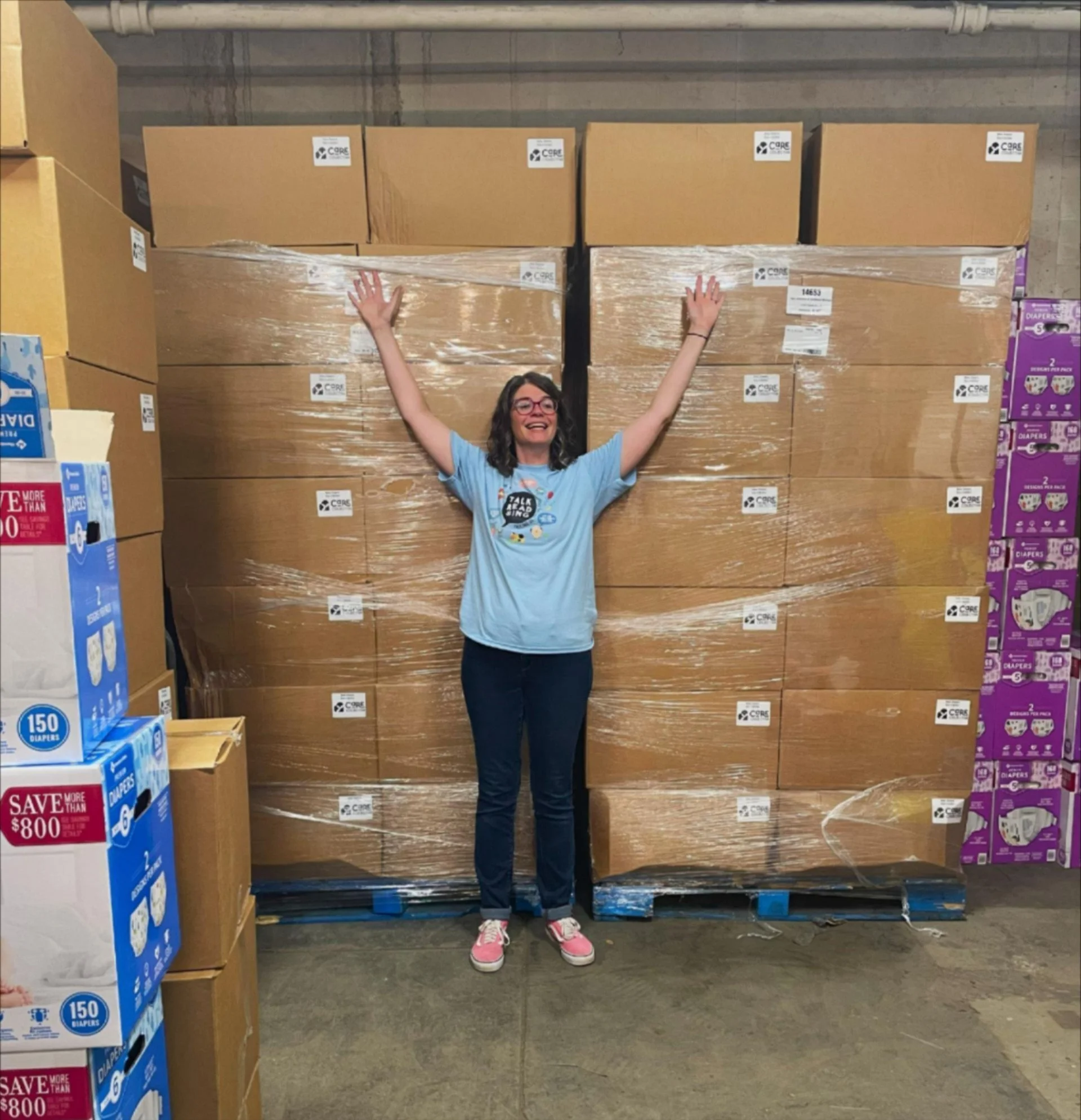 About halfway through the year, we moved into a warehouse space and received our first bulk purchase of thousands of diapers and period products. We got to answer a lot of exciting questions like: “Where do all these diapers go?” and “How do we know when to place a second order?” and “No, seriously, where do these diapers go?”